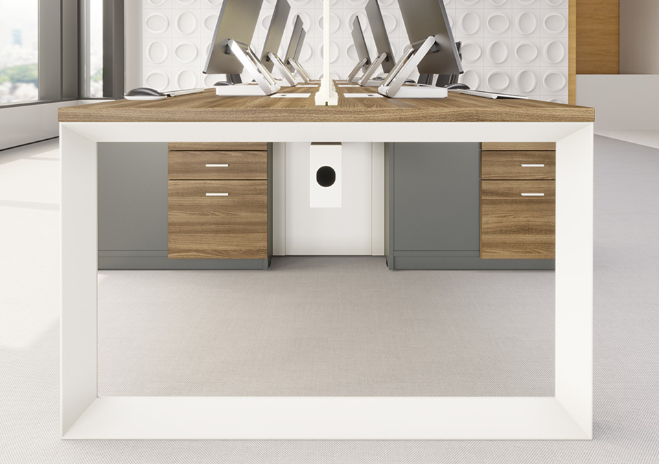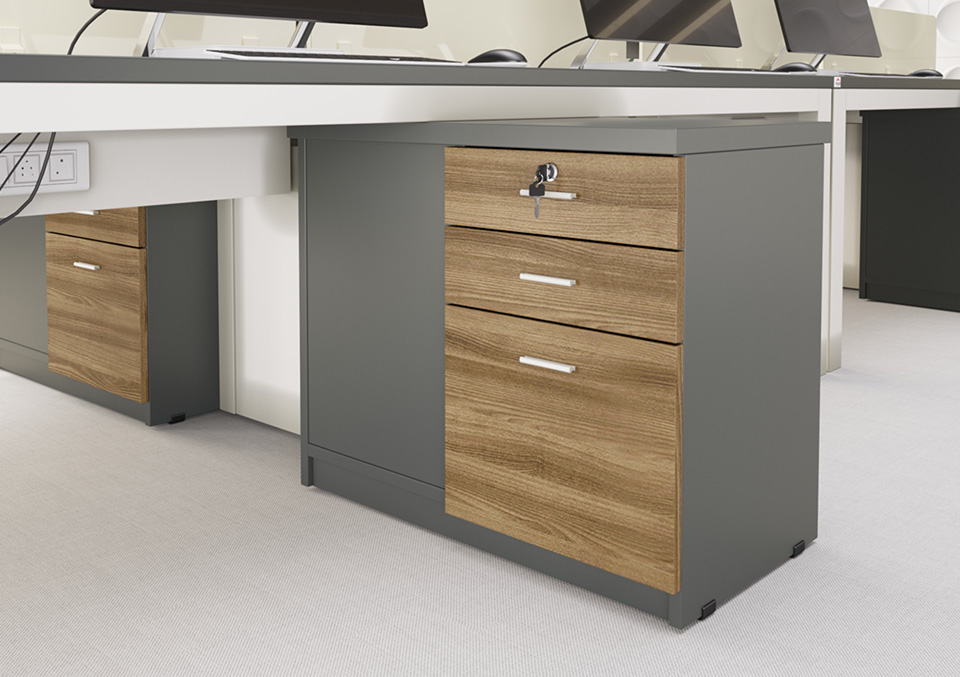 Choose from a variety of materials, finishes, and colors, allowing each desk, pedestal, and leg to align seamlessly with your workspace aesthetic.