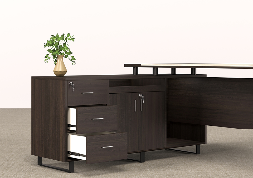 A seamless, high-capacity side unit designed to organize files and essentials while maintaining a professional, clutter-free profile.