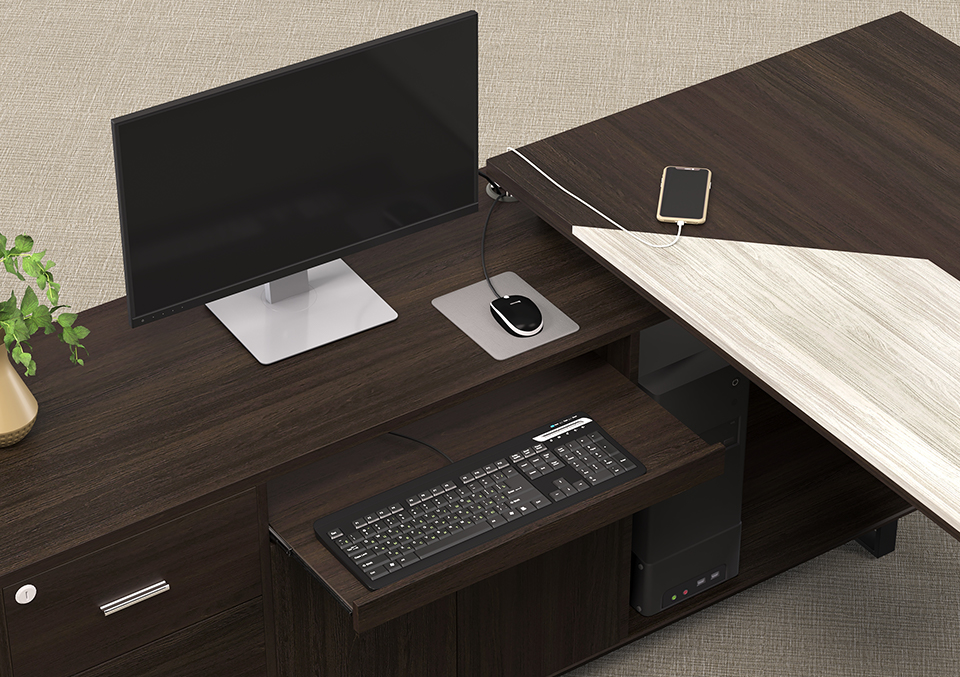 Designed with built-in channels to manage your technology seamlessly, keeping your primary work surface organized and free of clutter.
