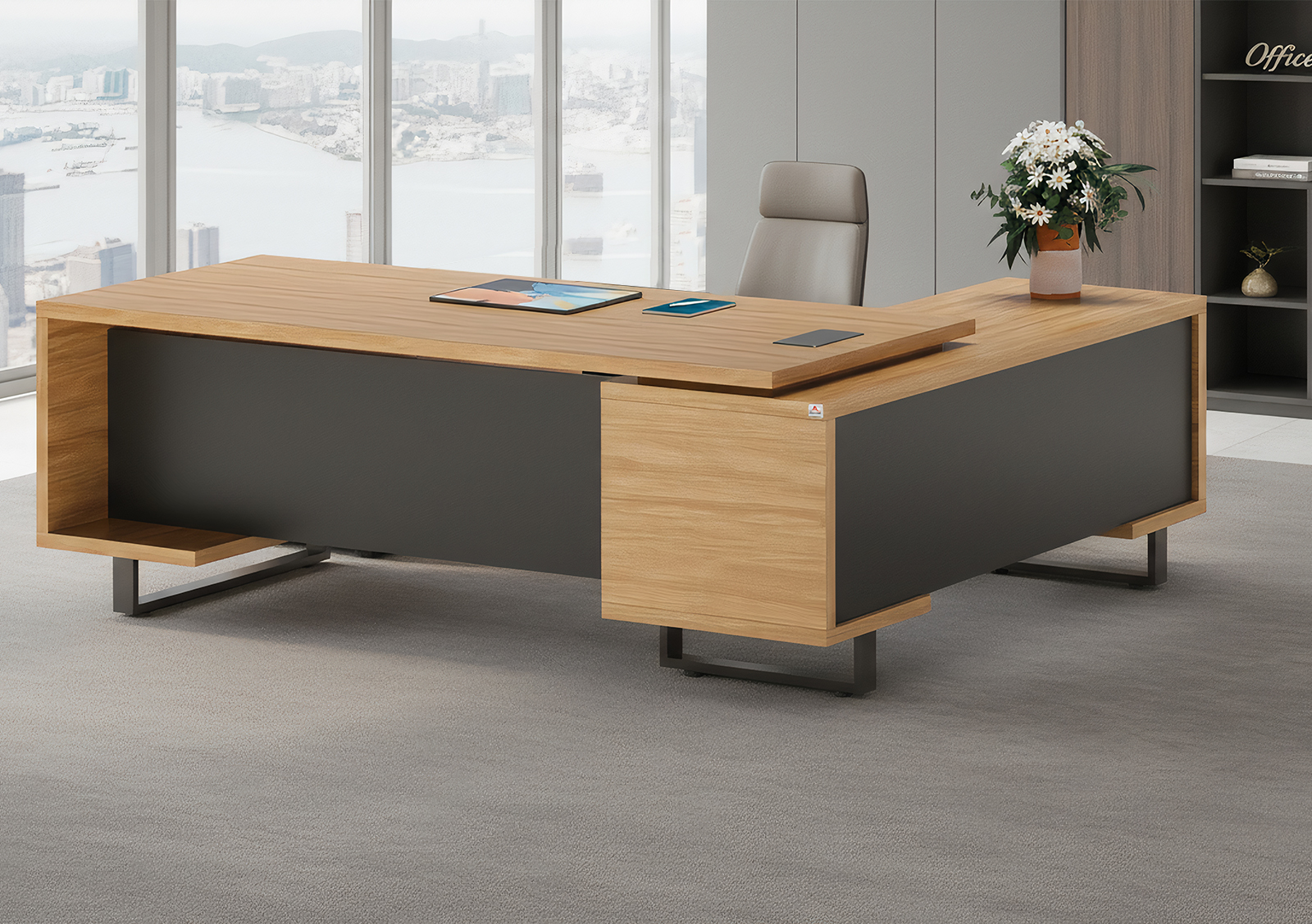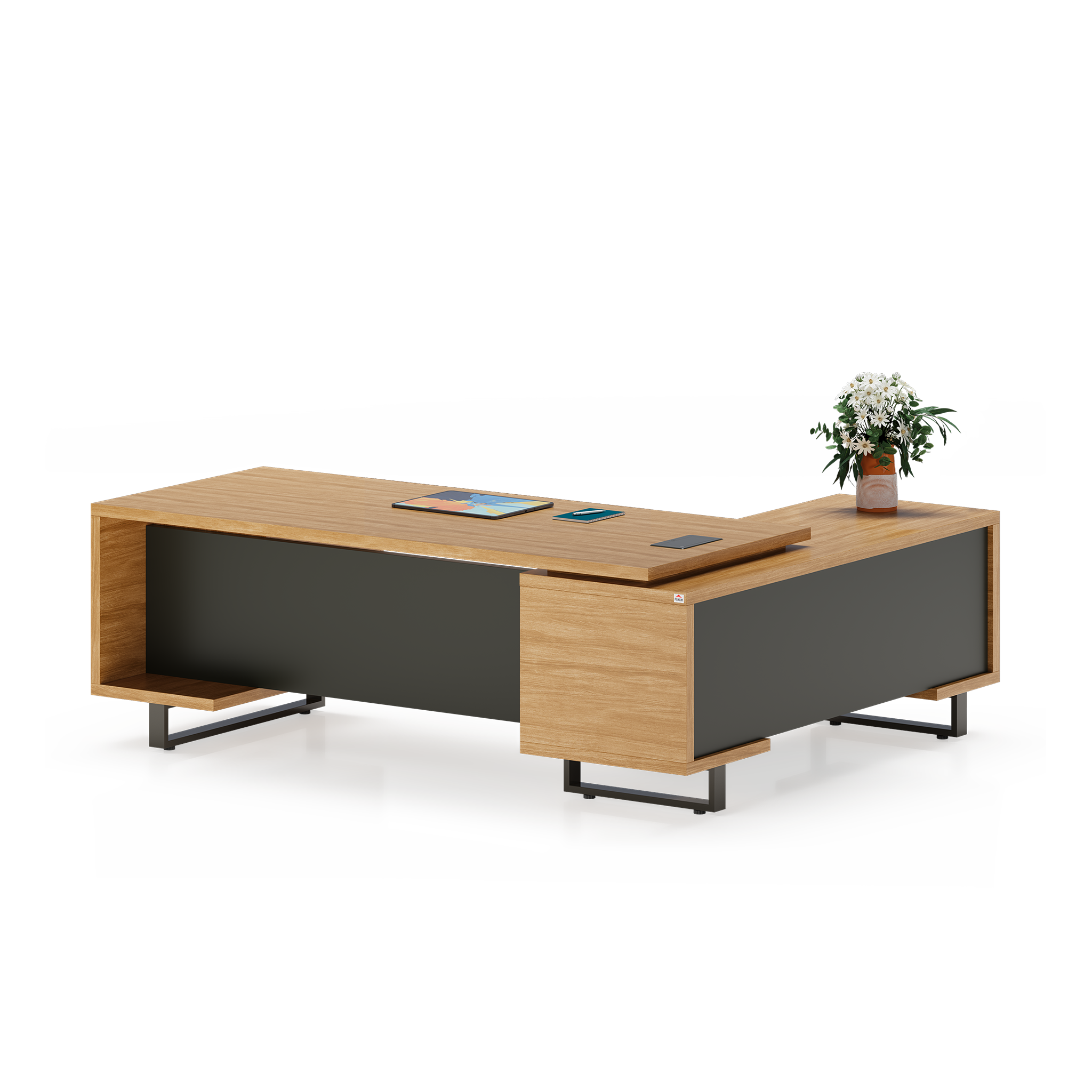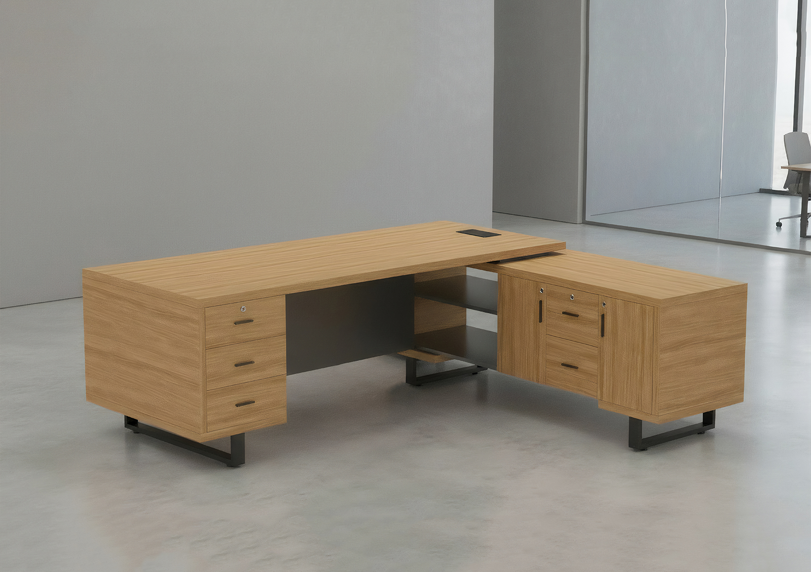 Sleek, spacious, and sophisticated. Crafted with premium wood and metal accents. A desk that defines modern professionalism.