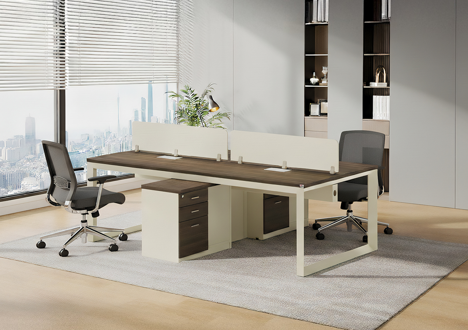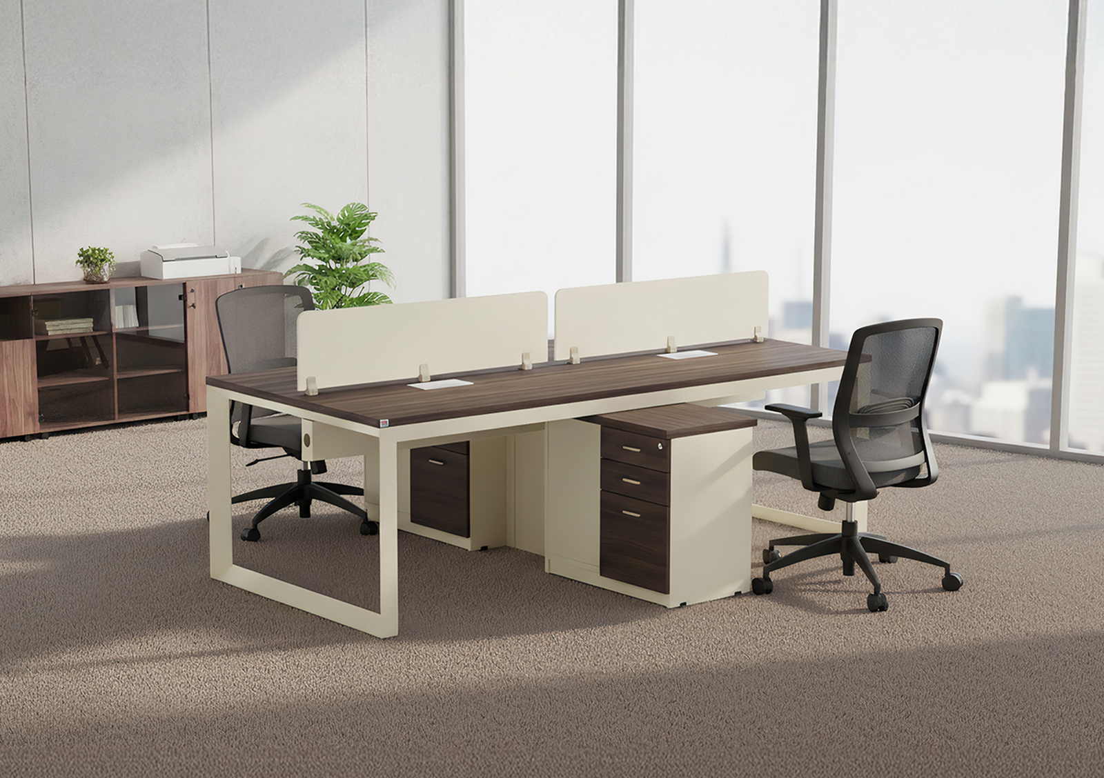 Balanced by design. This dual desk setup supports clear thinking, seamless teamwork, and a peaceful workflow.
