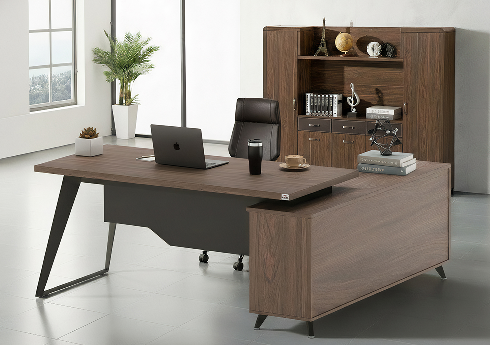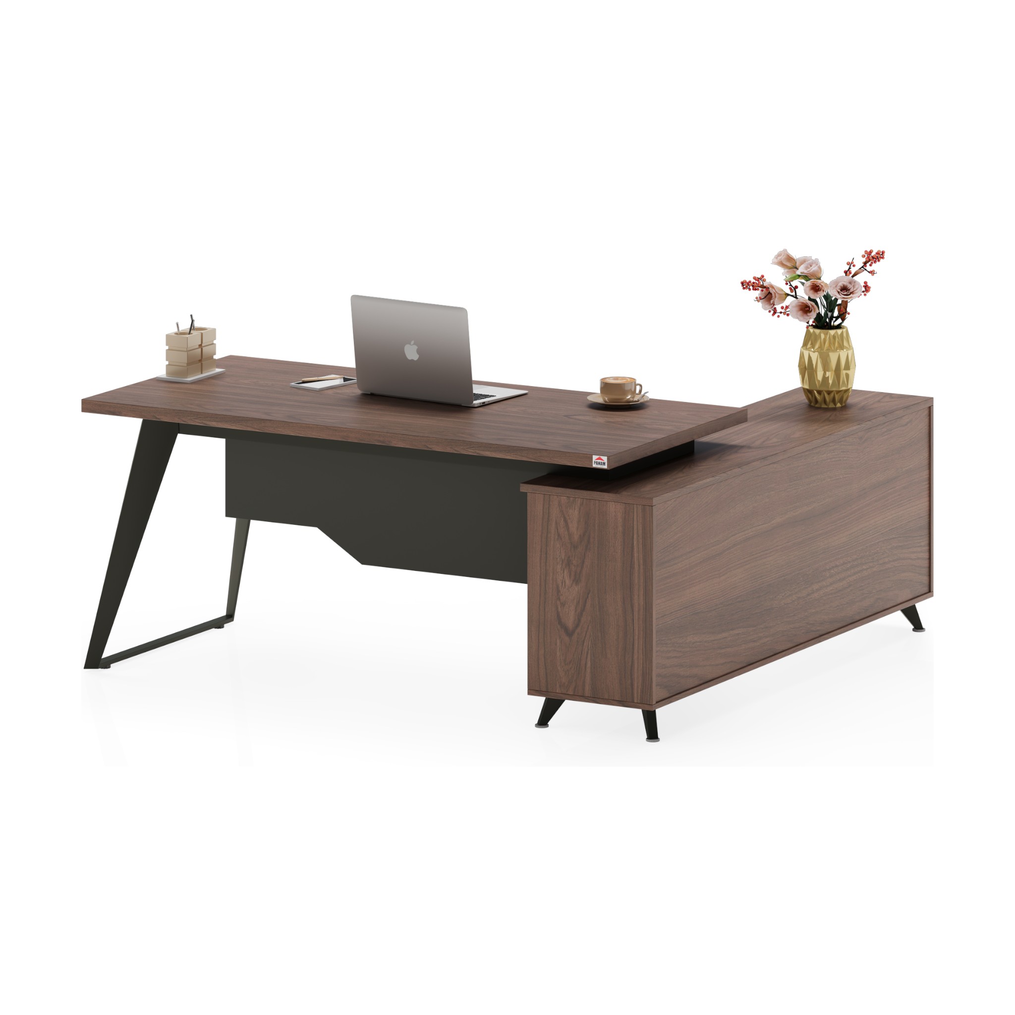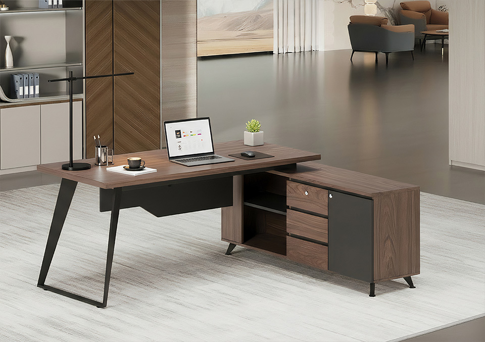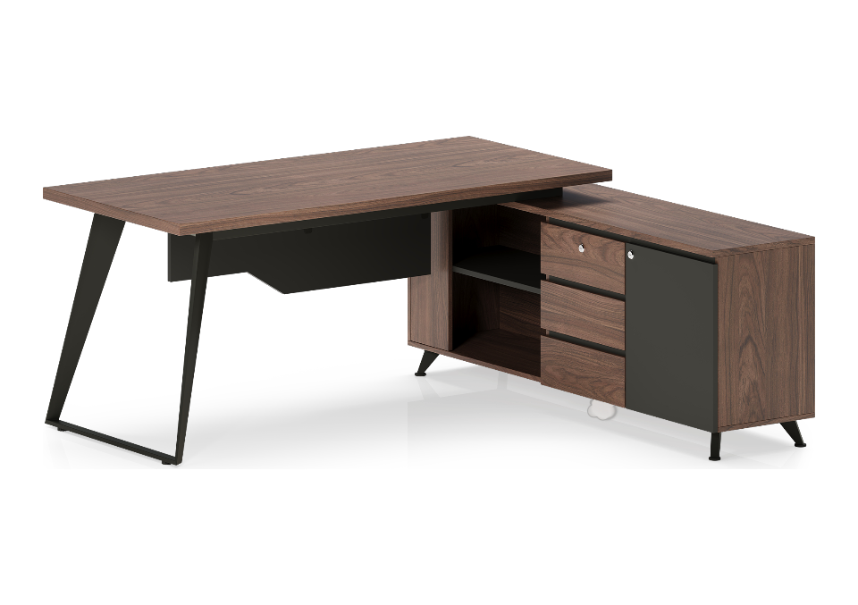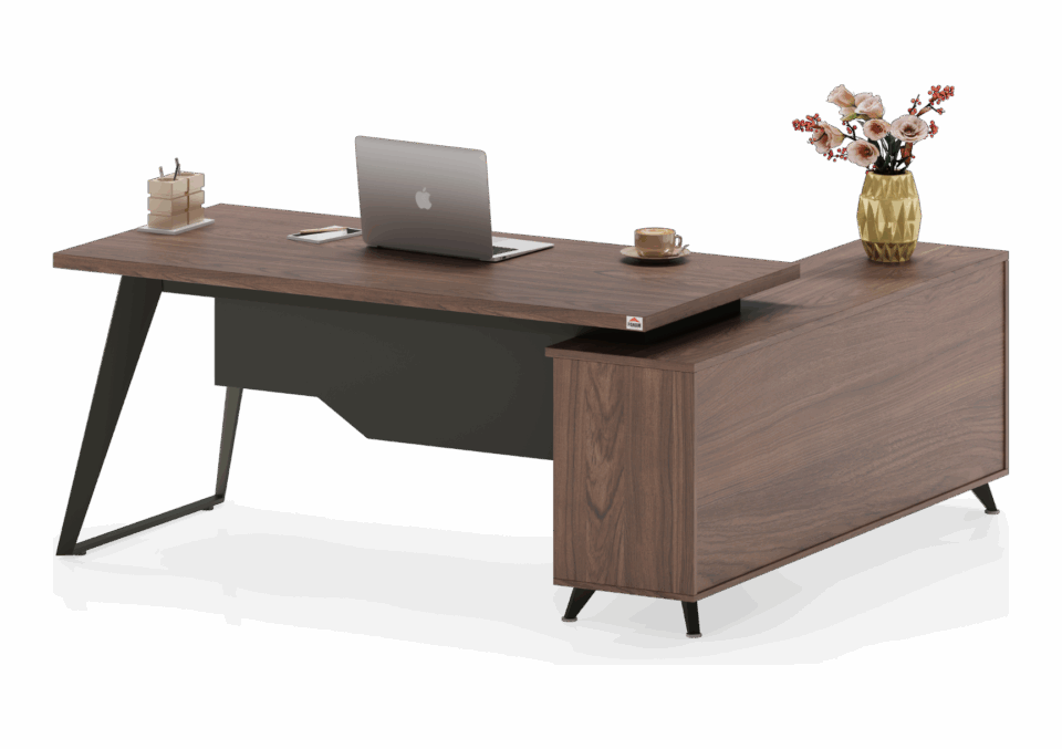 A powerful L-shaped configuration featuring an expansive primary desk and a substantial side return for maximum leadership efficiency.