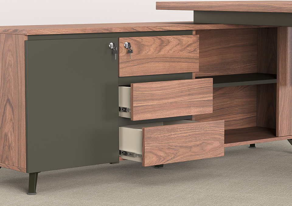 Smart design meets hidden storage—this unit keeps your executive workspace clean and clutter-free while providing a stable foundation for the desk.