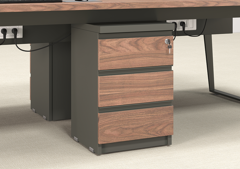 Built for performance with slitted metal legs, ample legroom, and a 3-drawer mobile pedestal.