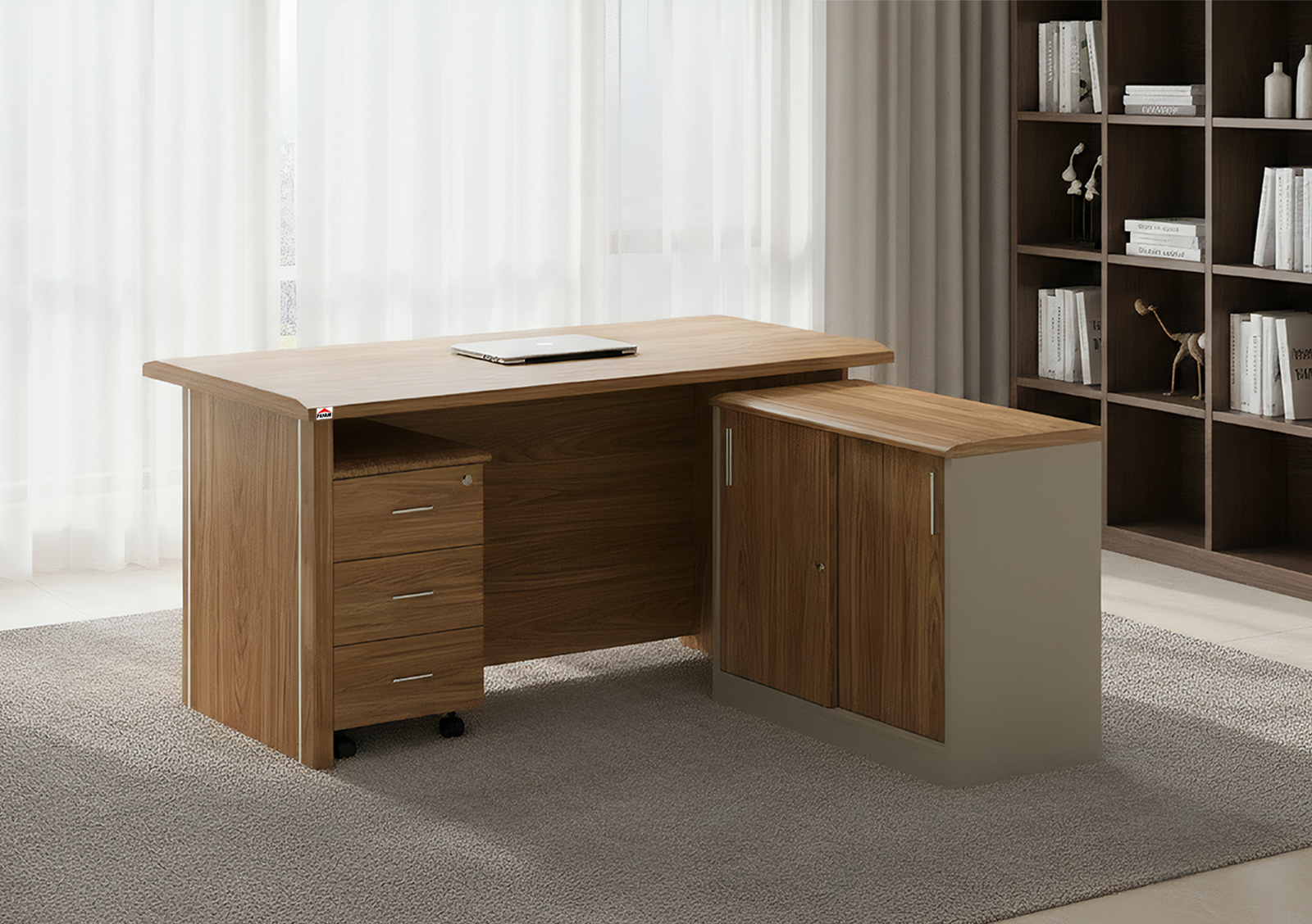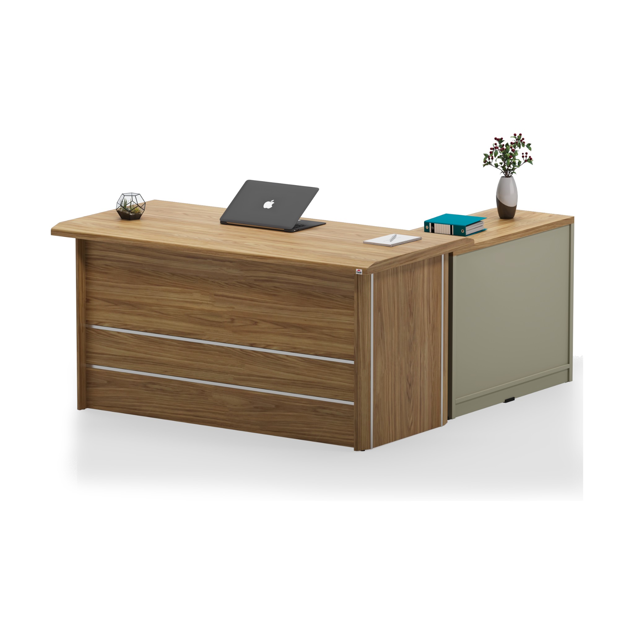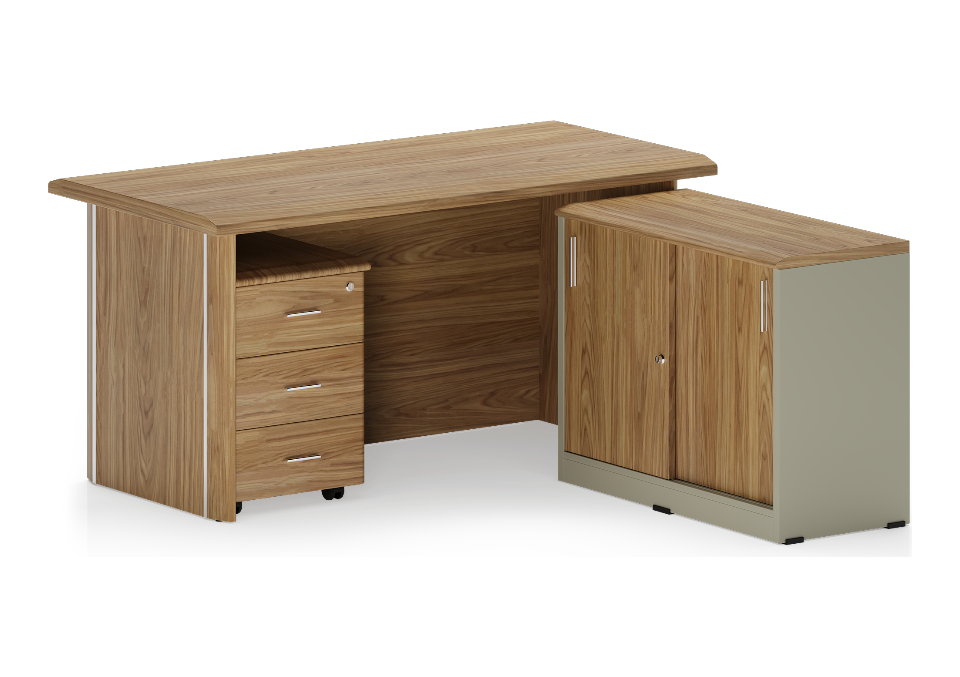 Refined for modern leadership, this desk features a wide surface and integrated side storage, delivering a spacious and professional environment built for performance.