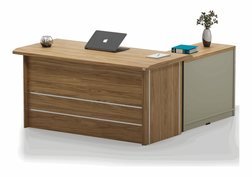 A spacious executive surface and integrated side unit provide a seamless, clutter-free workspace designed for high-level functionality and a flawless professional appearance.