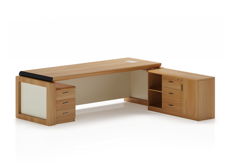 Constructed with durable engineered wood and matte finish. Includes multiple drawers and cabinets for efficient organization and professional appeal.